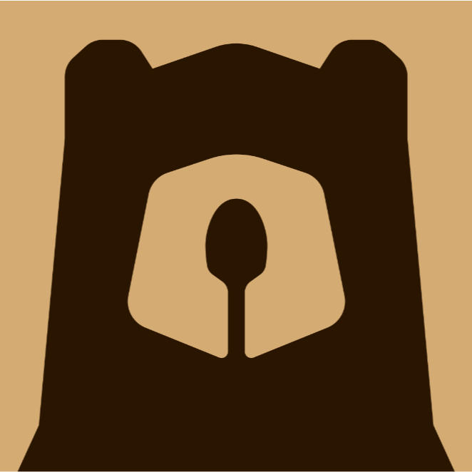 The clever spoon-snout integration makes the logo instantly memorable and brand-appropriate.